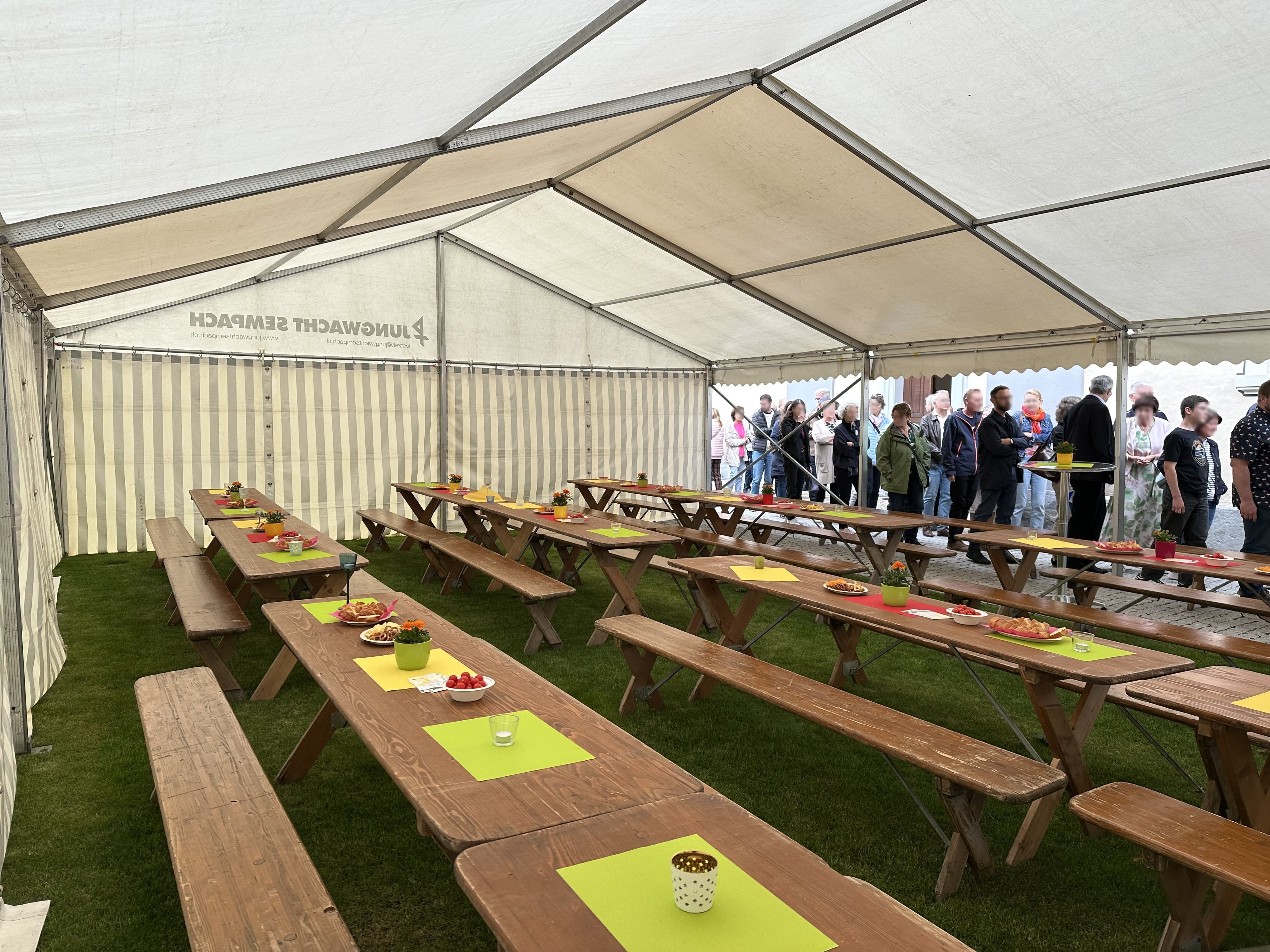 Bilder vom Festzelt bei einem Geburtstagsfest.